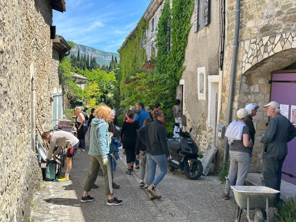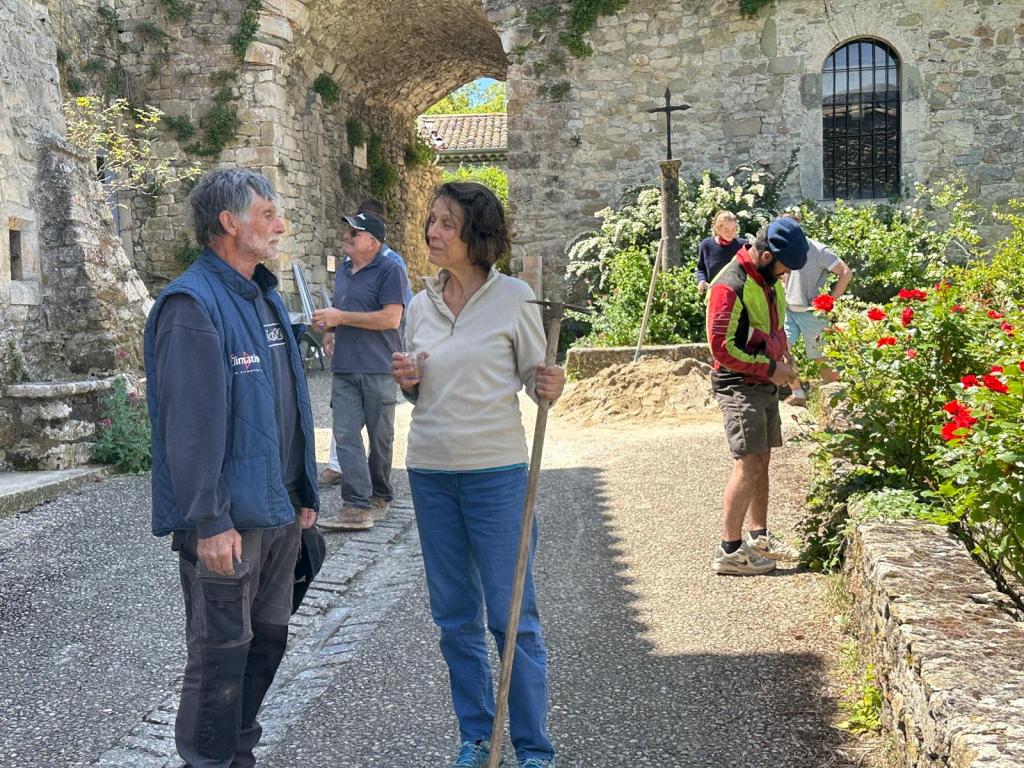 Une trentaine de Soyanaises et Soyanais se sont retrouvés les 24 mai et 28 juin 2025 pour entreprendre la restauration de la calade qui donne accès à l’Eglise Saint Marcel et au château depuis le vieux village.