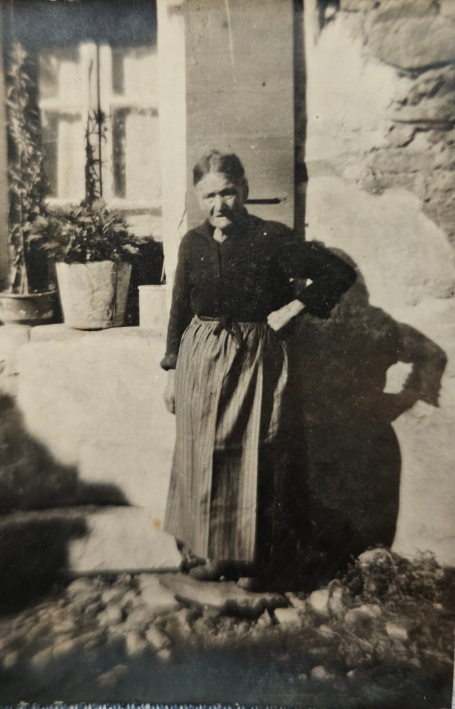 1928 : Une habitante du vieux village devant sa maison